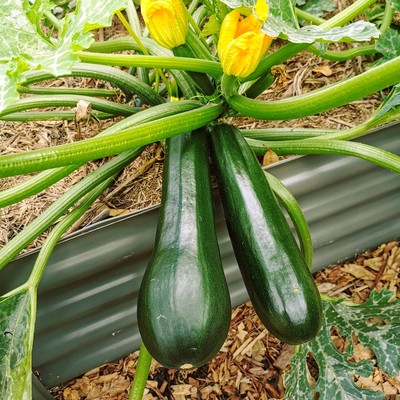 Zucchini plants produce both male and female flowers which require pollination in order to produce fruit. It’s beneficial to have some flowering plants close by to your Zucchini to attract pollinators. The fruits are best harvested when they are young, at approximately 25cm in length, this is when they are most tender and at their best in flavor. Harvest the fruit regularly as they can very quickly get away from you, growing up to a few inches each day.