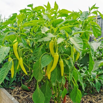 Banana Peppers produce an abundance of delicate flowers which very quickly set fruit. The fruit grows into a Banana like shape and turns yellow when ripe. Banana Peppers are prolific producers and will crop all season long.