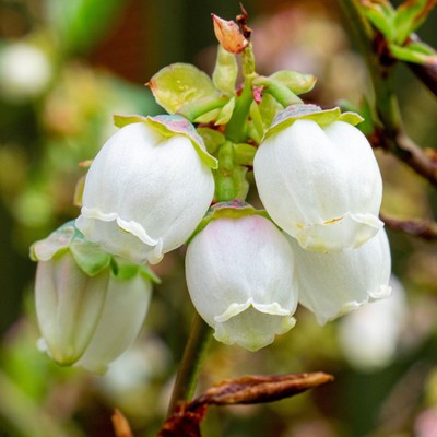 Blueberry bushes produce small bell-shaped flowers in spring, the flowers are soon followed by fruit which will continue to ripen throughout the summer months. The bushes make stunning garden hedges as they are very decorative, particularly with their blossoms and coloured autumn foliage.